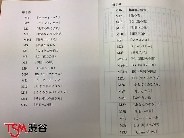 には、キャストの「台詞」やちょっとした情景が書かれているのですが、照明コースやPAエンジニアコースの学生