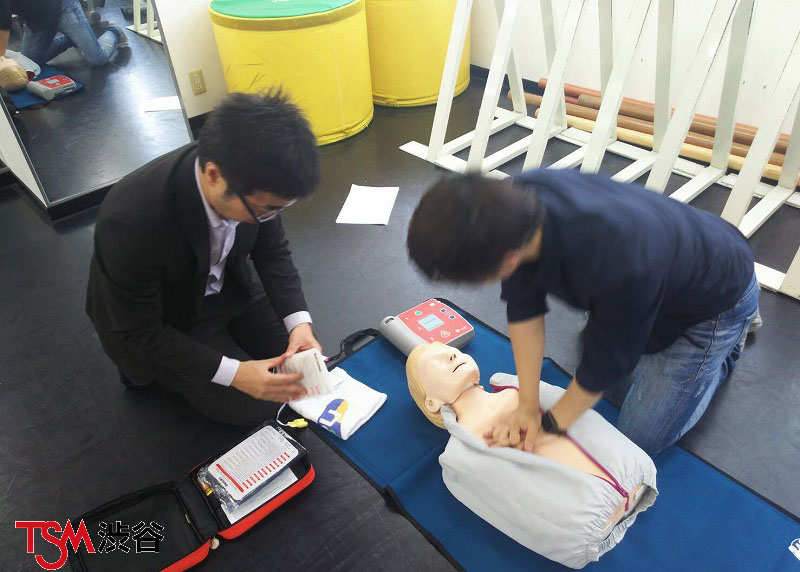 人命救助は、人工呼吸、心臓マッサージ、そして除細動(AEDですね)の3つことを言うんです。頭ではわかっていてもいざという時に戸惑ってしまうのでこうやって担任の先生たちが練習をしたんです