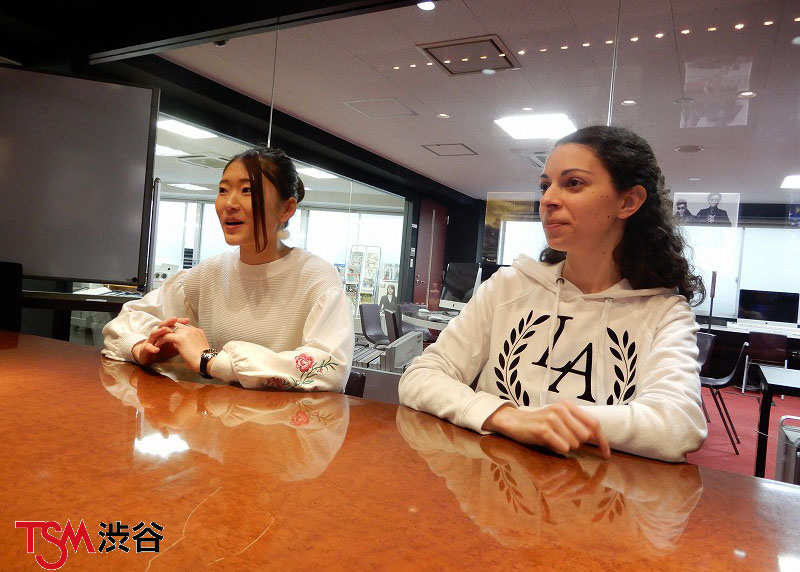 学校で何やら在校生さん向けに取材があるって聞いたので教室を覗いてきたレイボスです。TSM渋谷のマネージャーコースのサラさんと、姉妹校のTSM葛西のコンサート企画制作コースの尾関さんがお話をしていましたよぉ