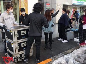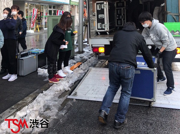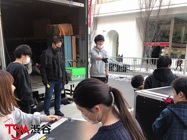今週は「WeareTSM!!卒業・進級制作展」の準備週間なので授業がないのですが明日の外部ホールでのリハーサルの為の積み込みを学生さんたちが頑張ってやっていましたよぉ