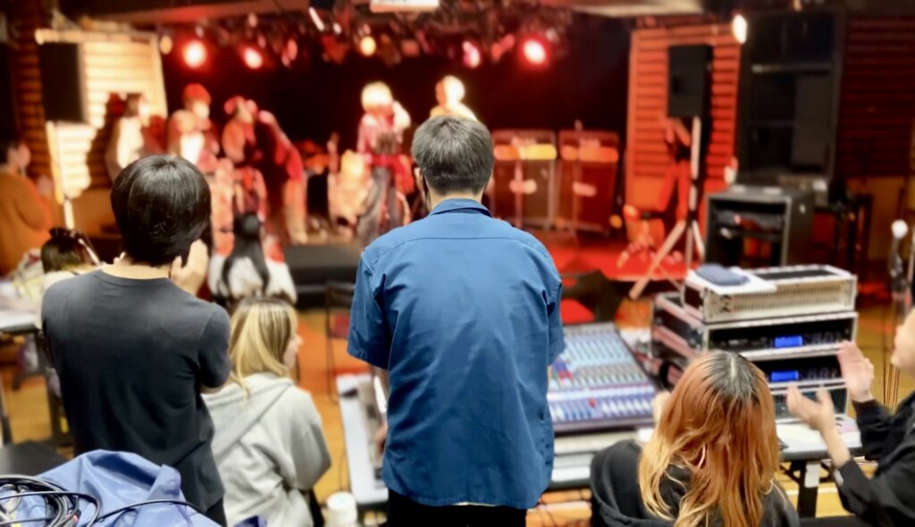 照明オペレーターや観客として