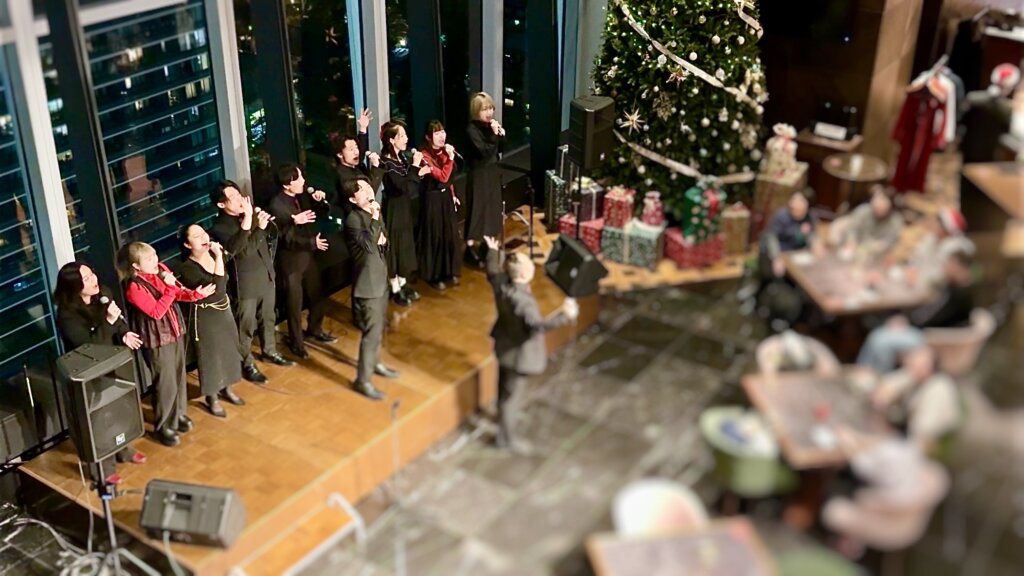 都内の とある社内ラウンジにてゴスペルアンサンブルの学生達がパフォーマンスさせていただきました🎤✨
