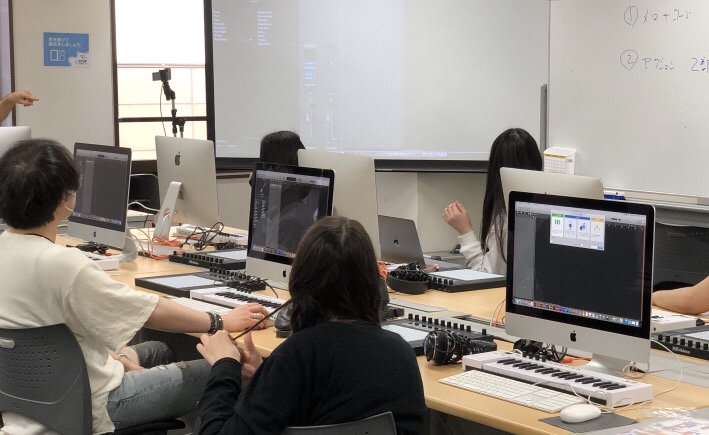 こちらはミキサーやフェーダーに関する授業が行われていました