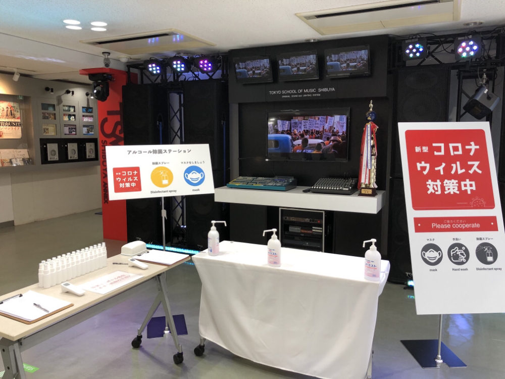 エントランスからスタジオの隅まで! 感染対策中
